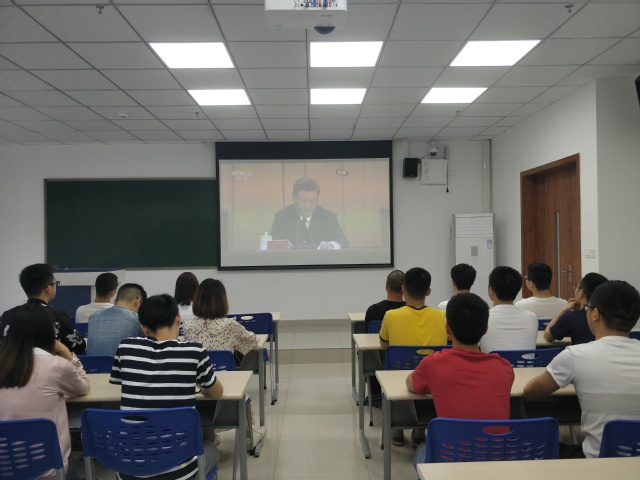 4月30日上午10:30,纪念五四运动100周年大会在人民大会堂举行。中共中央总书记、国家主席、中央军委主席习近平出席大会并发表重要讲话。宜宾研究院全体教师在709会议室收看了纪念五四运动100周年大会直播,认真聆听习近平总书记的重要讲话。