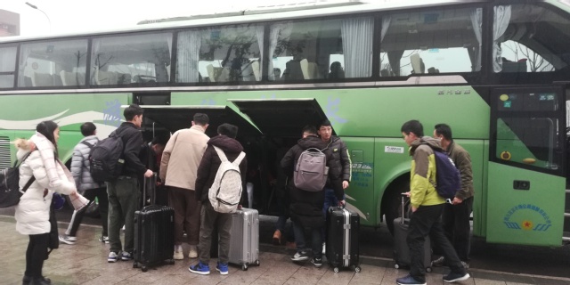 本次活动总共运送127名学生返回成都,且由工商银行宜宾支行承担学生乘车的全额费用。本次活动中,学院收集好学生们的回家地点与时间后,由工商银行宜宾支行积极对接车辆。大巴车于1月9日、10日上午9:00准时发车,当日13:00到达成都南站。