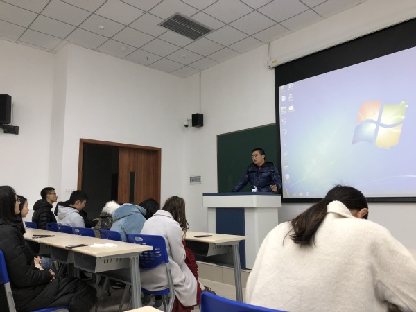 12月19日,经济学院党委副书记易宇峰、2016级电子商务专业辅导员罗莉在宜宾研究院1教102为2016级电商专升本同学召开主题班会。