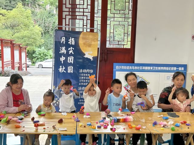 本次活动共分为“中秋节文化宣讲”、“节日手工制作”、“传递团圆”、“猜灯谜”四个部分。中秋节文化宣讲从中秋节的由来着手,讲述了中秋节的起源、发展、意义等,加深了社区居民们对中秋节文化的了解。“节日手工制作”中,让小朋友们用粘土捏出月饼的模样并展示。将月饼制作转化为手工艺品制作,推动了传统节日不断融入生活,丰富民俗活动的同时也推动社区居民们健康文明过节。