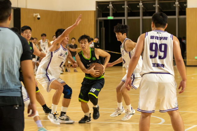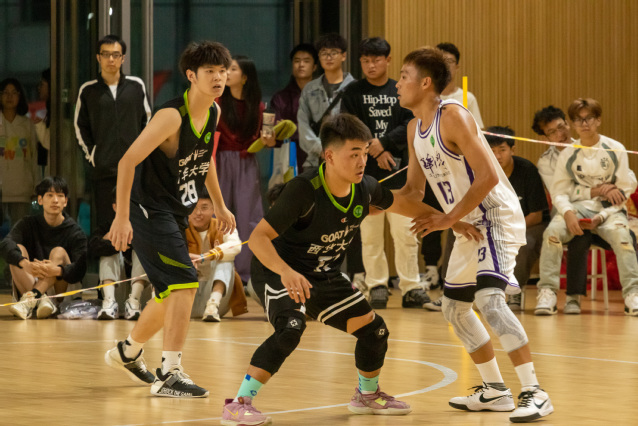 乘势而上开新局,砥砺前行谱新篇。第一场是由材料科学与工程学院和管理学院的同学们为我们带来的精彩比赛,比赛共分为四节。运动员们交错变换的步伐和敏捷矫健的身影展现在篮球场的各个地方。他们冲破层层攻守,抛出一条条优美的弧线。当篮球落入球筐时,随之而来的是观众们热情的呐喊声和激烈的鼓声。比赛进行得如火如荼,你追我赶,难分伯仲。在最后一秒,材料学院凭借一颗完美的“三分球”领先管理学院一分,最终以43:42的成绩取得了本场比赛的胜利。