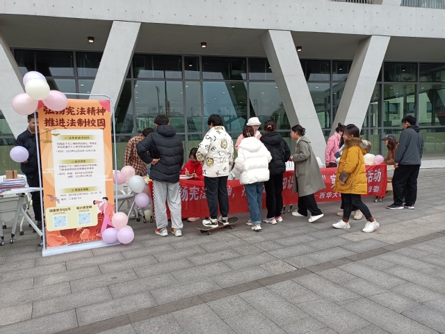 123日,在二食堂门口进行宪法乐答题活动,各位同学跃跃欲试,现场热闹非凡。通过游戏的形式,同学们学习到更多关于宪法的知识,让原本严肃的宪法也显得更加生动有趣,让学习宪法也变得更加快乐。