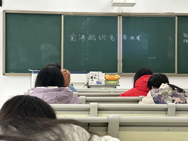 1130122日分别进行了宪法相关知识竞答的初赛和决赛,在活动现场,随着比赛正式开始,答题的刷刷声萦绕耳畔。答题结束后,工作人员对试卷进行收集批改,并当场公布结果。此次宪法知识竞答不仅让同学们更加重视掌握宪法知识,也让同学们了解到更多关于宪法日的知识。
