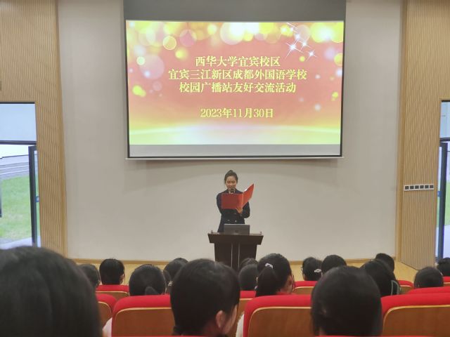 为响应加强大学城各高校联动和校际友好关系建立的号召,促进西华宜宾校广播台对外交流,引导宜宾三江新区成都外国语学校学子学习大学生自主管理,树立远大目标,提升播音、主持和编辑等综合能力,bv伟德国际体育官方网站“长翠之声”广播台应宜宾市三江新区成都外国语学校学生发展中心邀请,派西华宜宾广播台台长及优秀学生干事代表走进三江成外校园,与三江成外开展校园广播站学生自主管理经验交流分享活动。