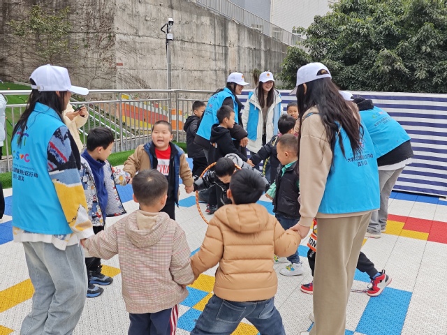 志愿者与小朋友们一起玩游戏