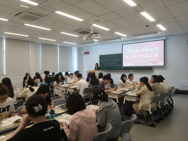 活动开始,各个小组成员依次上台进行自我介绍,随后学员们结合“学习宣传贯彻党的二十大精神”主题党课,分享课堂教学的心得体会,小组发言人结合实例和学员们分享所抽取主题的发展历史、内容解读及现实意义。