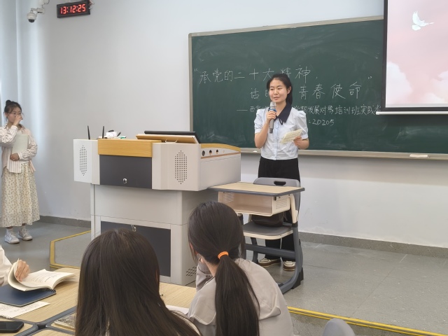 为贯彻学校党委安排部署、加强发展对象培训班成员培训,2024年4月14日中午,bv伟德国际体育官方网站2024年春季学期发展对象实践教学在校区2D-203、2D-204、2D-205同步开展。本次实践教学以上午党的二十大代表、四川省党员教育师资库讲师熊蕊授课的《学习宣传贯彻党的二十大精神》内容为基础,确定实践教学主题为:“承党的二十大精神,话时代青春使命”;实践教学以随机分组、随机抽题的形式开展,引领发展对象培训班学员知党史、感党恩、跟党走,激励学员们践行青年使命,谱写青春华章。