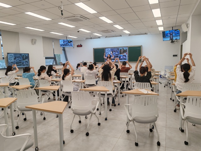 培训中,郭丹丹给大家分享了“雁阵”工作法,“头雁引领方向、中雁开拓进取、尾雁紧追不舍”的工作模式。着眼于教学育人过程中的问题,根据不同教学场景灵活变换“阵型”,调整队形和角色,充分发挥团队每个人的作用,致力于培养引导教师们在教育过程中“思改革、想创新,群雁竞飞忙教学”,提高课程质量,提升教学水平。“雁阵”工作法拓展了在座教师的教学思路,引发了大家对教学理念、目标及教学手段方法的认识和思考。郭丹丹还与现场教师进行了互动小游戏,通过游戏启发大家,每个学生接收知识都具有差异性和个性化,在教学过程中,要善于因材施教、因势利导,用心培养好每一只小“雏雁”,现场气氛热烈而融洽。