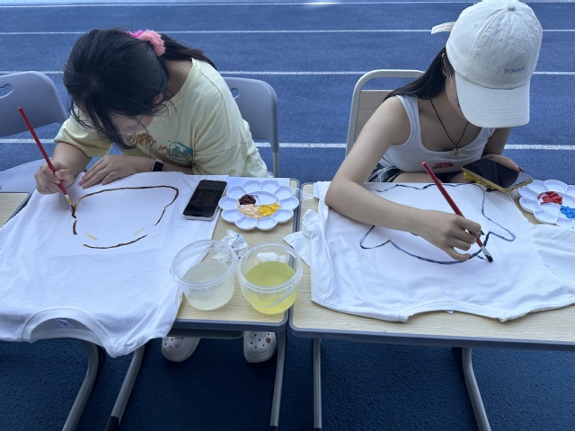 心理健康月活动共有6个活动,分别是阳光缤纷乐跑、心灵彩绘、自我肯定夸夸机、丢掉烦恼大作战、巧手绘心、巧手趣涂鸦。这些活动不仅内容丰富、形式多样,而且充满着创新与创意的元素,活动现场热闹非凡。阳光缤纷乐跑活动,同学们在宽阔的操场上尽情乐跑,每当有同学经过撒粉点时,伴随着阳光的照射,撒的粉随风飘散,就像是同学们的压力与烦恼也随之飘散。在心灵彩绘活动中,同学们在白色的T恤上用颜料画出自己心里想要表达的图样,大家一丝不苟、小心翼翼绘画的样子仿佛是在向自己吐露心中最真实的声音。同学们在现场互相分享喜悦,互相倾诉自己的烦恼。通过这种活动让同学们更加关注自己的内心,了解自我、悦纳自我,让同学们热爱生命,促进学生健康发展。