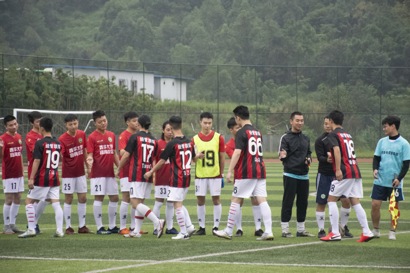 整个开幕式热闹非凡,聚集了众多足球爱好者以及热情洋溢的拉拉队队员们。比赛开始前,主持人李晓屹对本次足球赛致开幕词,宣读本次比赛规则。学生会负责人吴昊老师发言,她表达了对本次比赛的期待与祝福,同时也强调了本次球赛的宗旨:友谊第一,比赛第二。随后,为保证赛事的公平、公正,裁判代表和运动员代表各进行了一次宣言。最后双方队员握手示意球赛正式开始。