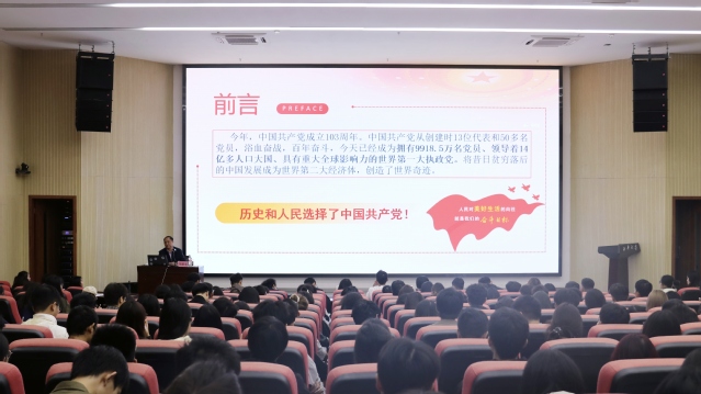10月20日下午,bv伟德国际体育官方网站党工委常务副书记陆跃文在一教报告厅为入党积极分子培训班学员讲授第一场课堂教学。陆书记重点解读了习近平新时代中国特色社会主义思想和党的二十届三中全会精神,并强调学习党史的重要性,嘱托学员加强党史学习。