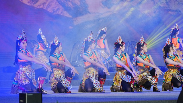 在宜宾会场,舞蹈《青山远黛》和《舞韵华风》极具中国古典美学特色,让观众在欣赏舞蹈的同时,也能穿越时空,领略那份来自古代的文化韵味和审美价值;歌曲《信任》深情演绎,触动心弦,带来无限的慰藉与力量;男声独唱《一颗心儿向着您》深情款款,送来了来自远方的真挚祝福,那一声声“扎西德勒”不仅是一句简单的问候,更是藏族人民对美好生活的向往和对远方朋友的深情厚谊的传递;民族舞《高原》以其独特的韵味展现了浓郁的民族特色,让人仿佛置身于那片神秘而壮美的高原之上。