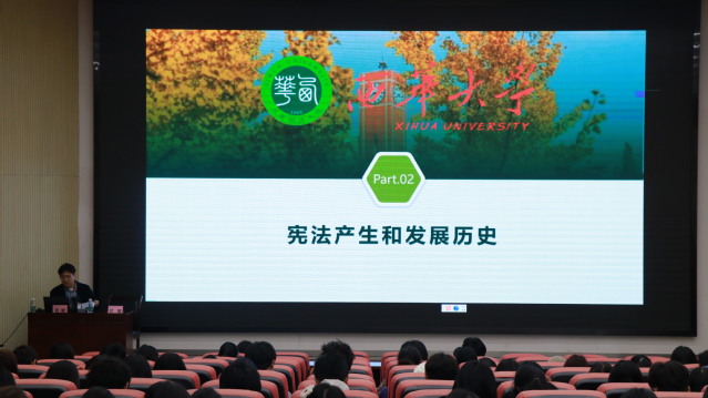 11月27日中午,在bv伟德国际体育官方网站1楼101报告厅开展了宪法知识宣传讲座。本次讲座由石岩担任主讲,他以“弘扬宪法精神· 建设法治中国”为题,从“宪法的基本知识、宪法的产生和发展历史、宪法的原则、12.4国家宪法日的作用和意义”四个方面进行了详细讲解,在对宪法的基本知识进行分析的基础上,以大量生动鲜活、令人警醒的案例帮助同学们全面、准确地认识宪法。同时,他鼓励大家要做好宪法宣传,增强法治观念,提高运用宪法和法律的本领。随后,付娆老师作为特邀嘉宾在现场分享了她身边的跟宪法知识相关故事,让我们体会到了宪法与我们每个人的生活息息相关。