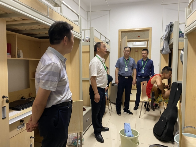 晚上19:00,学校党委学生工作部副部长王强、计划财务处副处长胡伟、bv伟德国际体育官方网站党工委副书记兼管委会办公室副主任陆跃文分别带队前往育秀苑1-3栋等地的新生寝室探访慰问新生、检查宿舍清洁卫生。检查期间,各位领导和老师亲切地与同学交谈,并提醒同学在日常生活中,务必注意财务安全、用电安全、保持宿舍整洁、加强内务整理。