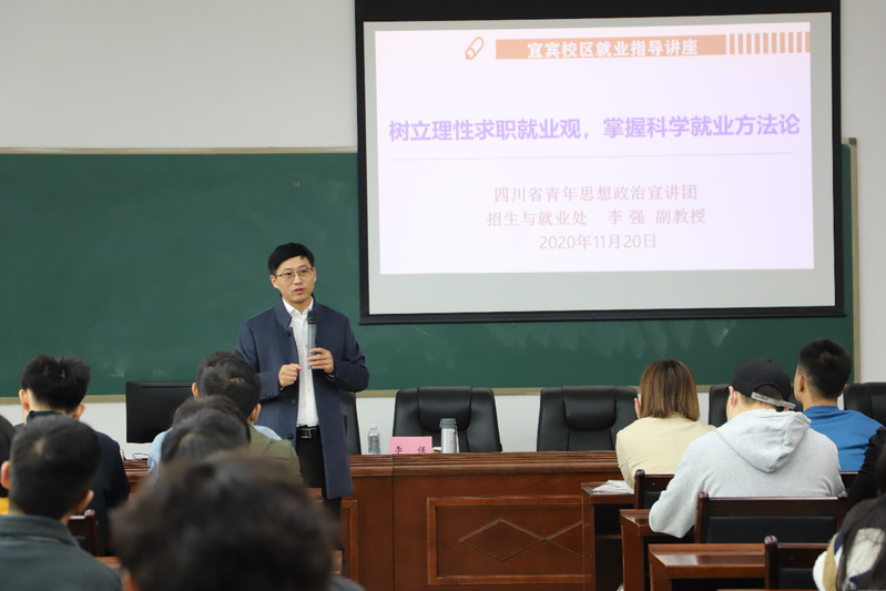 为帮助同学们做好职业规划,从思想、行动上做好就业准备,11月20日上午,bv伟德国际体育官方网站在1教106教室举办了以“树立理性求职就业观,掌握科学就业方法论”为主题的就业指导讲座。本次讲座特邀学校招生就业处就业科科长、四川省青年思想政治宣讲团成员李强副教授担任主讲人。校区共200余名学生参加了此次讲座,学工科邹颖老师担任讲座主持人。
