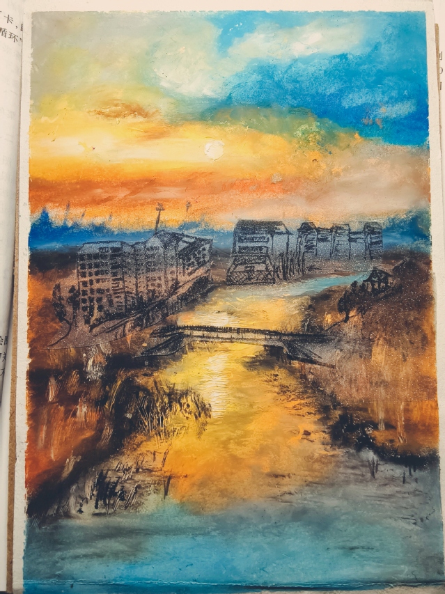 绘画中的西华夕阳