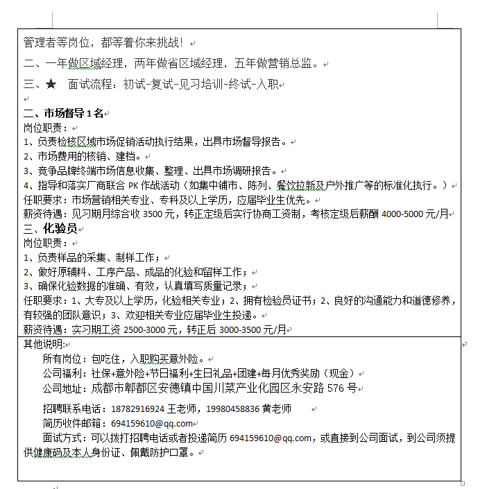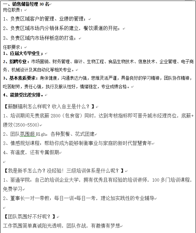 【线上招聘】四川省丽通食品有限公司
