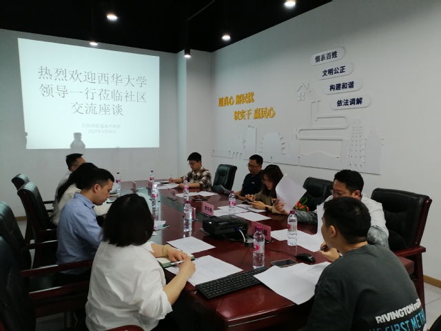 会议伊始,高丰社区刘远平根据前期调研情况,就“高校进社区服务需求”阐述了社区业主的多维度服务需求,内容涵盖文化教育、健康服务、社区美化、校社共建等四个方面。白沙湾街道宋莉、林浩紧密结合工作实际,介绍了校地合作的更多可能性,鼓励创建品牌活动,提出聘任大学生“半专业兴趣导师”,打造人气社区,拓宽宣传渠道等合作的必要性。