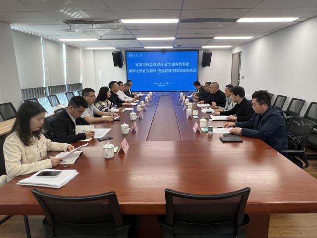 4月27日,宜宾市应急管理局副局长郭庆、宜宾市科教集团副总经理杨林一行来bv伟德国际体育官方网站交流座谈。学校应急管理学院党委书记曾国勇、应急管理学院院长舒志乐出席会议,bv伟德国际体育官方网站管委会常务副主任陈广贵主持会议。