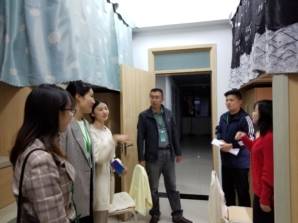 本次排查工作的重点是寝室用电安全、收养宠物、各类商业经营活动及寝室卫生情况。陆跃文带领综合办、安全保卫办的老师们排查女生寝室,郭建军带领学工办、物业公司教师排查男生寝室。老师们细心询问同学们的生活和学习情况,现场对同学们进行安全意识教育,叮嘱大家注意寝室用电安全,养成良好的卫生习惯,发扬良好的寝室文化,提醒同学们严格遵守学校校规校纪。排查过程中,老师们针对寝室卫生、用电安全和防火防盗等可能造成安全隐患的地方进行了重点排查,并对寝室安全卫生情况良好的提出了表扬,对发现问题的寝室现场提出批评并规定时限要求整改。