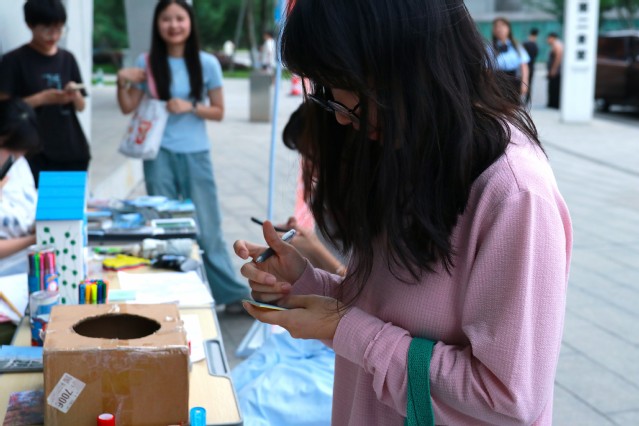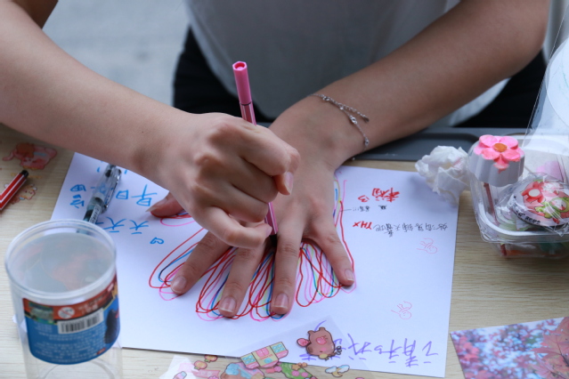 活动现场气氛热烈非凡,吸引了大量同学的积极参与。活动中精心设置了“乐事1+1”与“掌心寄愿”特色板块。“乐事1+1”环节中,同学们化身为“快乐传递者”,他们匿名书写下自己近期的喜悦故事和暖心瞬间,投入盲盒箱中,再随机抽取他人分享的快乐纸条,让积极情绪在整个校区内得以传递。“掌心寄愿”则成了一片温情的汇聚之地,同学们纷纷拓印手印并书写祝福,用富有创意的方式表达对自己或他人的鼓励与支持。