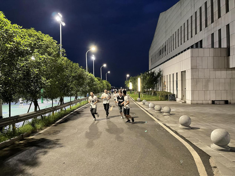 晚上八点荧光夜跑活动正式拉开序幕。一百余名同学齐聚足球场,手腕上戴着绚丽多彩的荧光手环。本次荧光夜跑活动以足球场为起点,途径食堂、教学楼、实训厂房等,最后回到足球场。夜色下,光影中,同学们奔跑时荧光手环发出的光点亮了校区,留下了一个个青春的足迹,形成了一道亮丽的风景线。