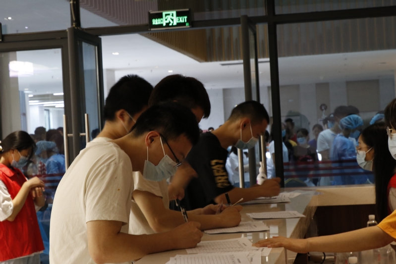 下午1点,接种工作正式进行。前来接种新冠疫苗的学生在静苑正大门前有序排队。同学们佩戴口罩,携带身份证,在志愿者引导下,按照接种流程完成每一步操作。校区安排各部门相关工作人员在现场维护秩序,加强引导,同时动态监测师生接种后是否出现不良反应。整个疫苗接种工作组织严密,安排周密。
