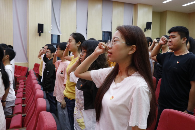 培训会上,全体党员起立,齐唱《没有共产党就没有新中国》,观看视频《百年恰是风华正茂》。学生党务工作站严涵带领新党员进行入党宣誓、重温入党誓词。