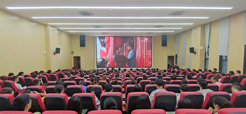 8:00,庆祝中国共产党成立100周年大会在北京天安门广场隆重举行。中共中央总书记、国家主席、中央军委主席习近平发表重要讲话。校区组织广大师生于101报告厅集中收看庆祝中国共产党成立100周年大会实况,认真聆听习近平总书记重要讲话。观看师生着装得体,佩戴党员徽章,全神贯注。现场不时爆发出热烈掌声,为习近平总书记精彩讲话喝彩。