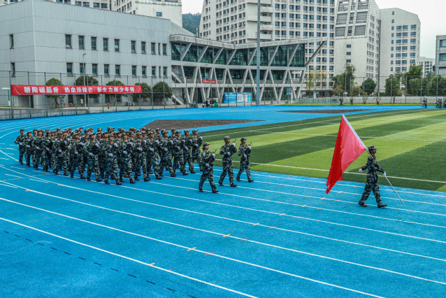 典礼在庄严的升旗仪式中开启,伴随国歌旋律,五星红旗冉冉升起,全体人员肃立行礼。礼毕,分列式正式开始。在教官指挥下,护旗方队率先出发,其余方队依次迈着整齐步伐向主席台行进,学员们军姿飒爽、步调一致,现场氛围庄重热烈。