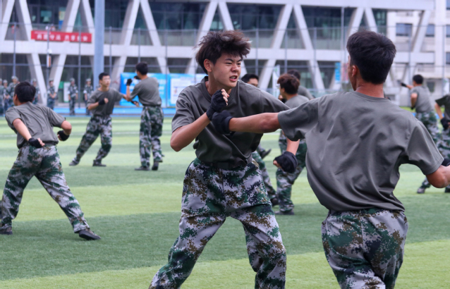 结训汇报以军训特色科目展示的形式上演,旗语、应急棍、匕首操、警棍、擒敌拳、医疗救护、战术等项目依次呈现,学员们动作整齐利落、配合默契,展现出军训的扎实成果与吃苦耐劳的优良作风。