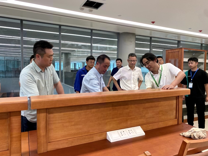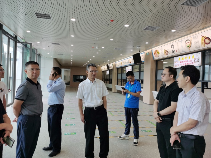刘树根校长一到校区便开始调研,先后到二期食堂,学生宿舍、教学楼、图书馆、会堂、体育馆、学术交流中心、学生事务办事大厅、教师周转房等教学育人场所,仔细查看食堂开餐筹备及配套建设,查看教学楼教学设施设备、查看室外景观绿化施工进展及校区安全等情况,他详细询问了校区防疫物资储备保障、学生返校准备工作、食堂消毒以及学生就餐方案等情况,听取相关部门负责人就开学前准备工作进展情况的汇报,并与现场工作人员进行了交流。