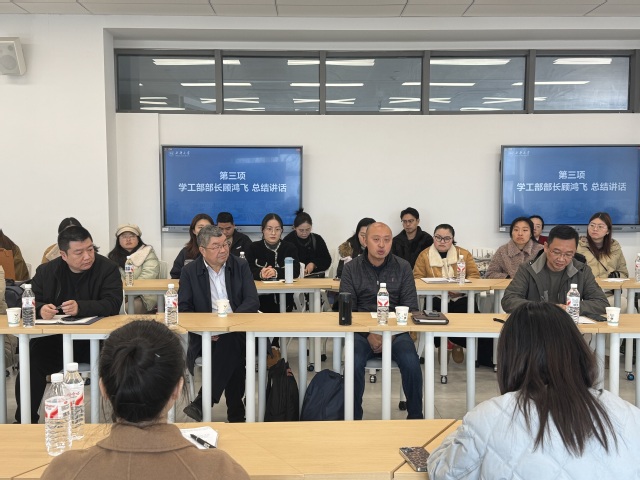 最后,顾鸿飞作总结讲话,认为此次活动为辅导员搭建了高效的交流平台,强调辅导员是高校思想政治教育工作的骨干力量,队伍的专业化、职业化建设直接关系到育人质量的提升。他希望全体辅导员以此次沙龙为契机,加强学习交流,提升业务能力;以工作室建设为抓手,深化育人模式创新;以年终考核为动力,推进各项工作落实;以考风考纪建设为重点,筑牢育人底线,切实肩负起立德树人的神圣使命,共同推动学校教育事业迈向新的台阶。