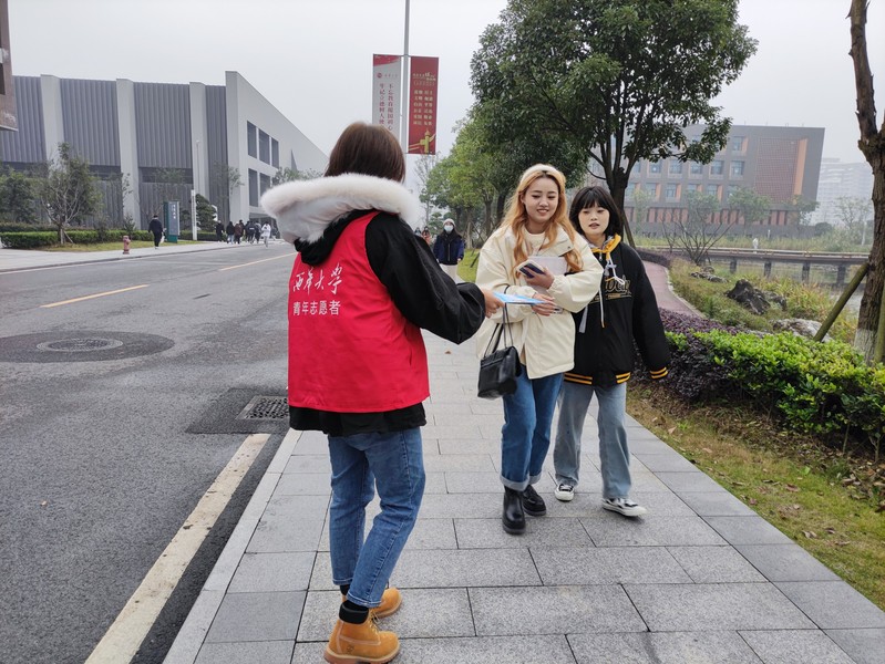青年志愿队成员们在一食堂前后门口向来往学生们分发防艾相关宣传资料,热情为同学们介绍艾滋病相关的知识。同学们主动了解、仔细聆听,认真的阅读相关的宣讲资料,有效提高校区学子对艾滋病更加深入的认知。