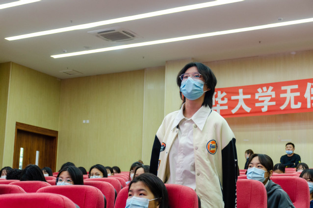 应急无偿献血,传递爱的正能量。卿小玲以提问开场,调动同学积极性、参与性,通过分析同学献血时的害怕、紧张感受,结合自身献血经历道出献血后可能出现的正常生理现象,进而打消同学们的顾虑,并从科学角度科普了献血的好处。