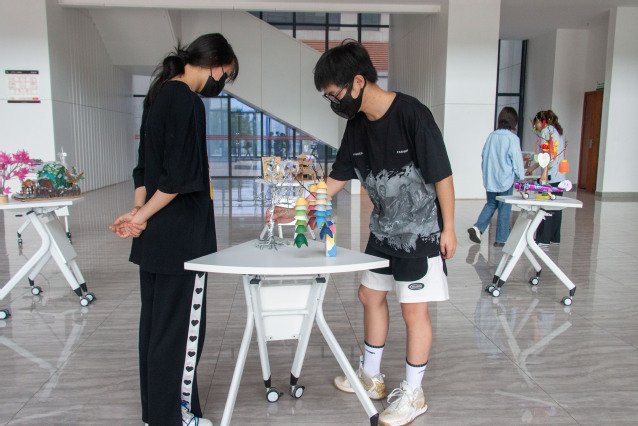 4月16日—4月24日开展变废为宝大赛;16日开始收集同学们的作品,通过网上投票、线下评选。于24日上午将优秀作品在一教大厅展出。西华学子利用生活中轻易可见的废品,集中智慧和各种创意,对瓜子壳、塑料瓶、纸箱、易拉罐等一系列废品进行回收再创造,制作出了乡间小屋、灯笼、飞机、兰花、蝴蝶等精美的艺术品。特别是建筑环境与设备工程专业的毛昱力同学,充分开展想象,利用易拉罐、雪糕棒、牙签、废弃的自行车内胎等生活中常见的材料做出了一架飞机模型,赢得观众赞叹不已。