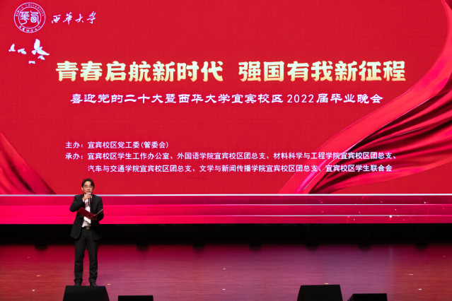 三江汇流处,百年党史情,强国新征程,青春正当时。为积极响应即将召开的中国共产党第二十次全国代表大会,激励bv伟德国际体育官方网站2022届毕业学子不忘初心,永远跟党走;5月17日晚,由bv伟德国际体育官方网站党工委(管委会)主办的“喜迎二十大暨2022届毕业生晚会”在会堂盛大举行。宜宾市委人才和大学城工作局副局长银燕、宜宾市团委副书记赵一晓、宜宾市科教集团总经理明亮、bv伟德国际体育官方网站党委常委、副校长费凌及各学院领导出席本次晚会。到场观众千余位,现场气氛高涨。