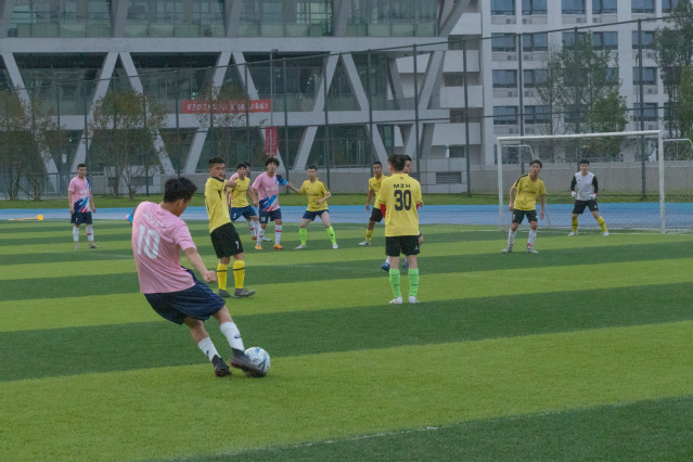绿茵点亮激情,汗水舞动青春。本次比赛分为管理学院、建筑与土木工程学院、汽车与交通学院、电气与电子信息学院、材料科学与工程学院、机械工程学院6支队伍。开赛口哨响起,每位参赛球员意气风发,以高昂的斗志投入到比赛中,完美演绎了足球的无穷魅力与无边激情。赛场上,球员们尽力拼搏,奔跑之姿如离弦之箭,赛场喊声振奋人心。经过一天的比赛较量,管理学院、汽车学院两支球队脱颖而出来到决赛。