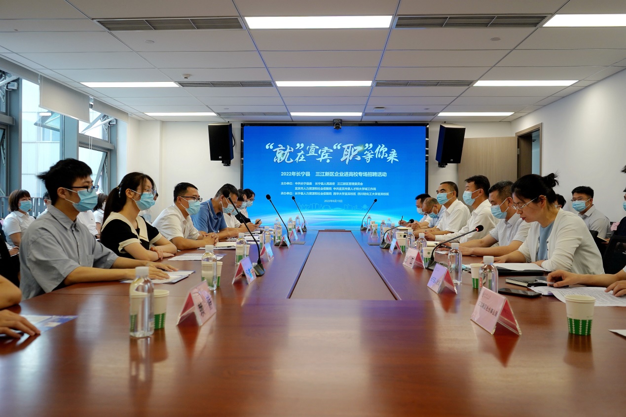 为贯彻落实习近平总书记来宜讲话精神,进一步帮助校区2022届毕业生顺利就业和高质量就业,6月15日上午,由宜宾市人力资源和社会保障局、中共宜宾市委人才和大学城工作局、宜宾市国有资产监督管理委员会、宜宾三江新区管理委员会主办,bv伟德国际体育官方网站党工委(管委会)承办的2022年国有企业进高校专场招聘活动在bv伟德国际体育官方网站隆重举行。招聘会当天,学生和用人单位就业双选的氛围热烈,上午八点刚过就有用人单位陆续前来报到。在招聘单位一览表的巨幅桁架海报前,人头攒动,不少同学驻足查看、手机拍录名单。