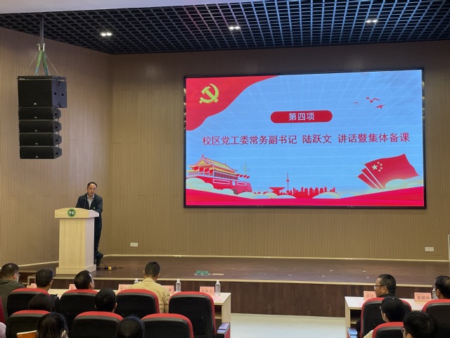 大会第四项,校区党工委常务副书记陆跃文讲话表示,党的二十大学生宣讲团成立是创新学习形式的有益探索,并对宣讲团成员宣讲党的二十大精神提出四点要求。一是要学懂弄通。宣讲团成员应先学先懂,真学真懂,全面、系统、深入的学习,深刻领悟党的二十大关于党和国家事业发展的大政方针和战略部署的历史逻辑、理论逻辑和实践逻辑,深刻领会党的二十大精神,认真备课,坚定不移的做好宣传员,撸起袖子加油干,风雨无阻向前行。