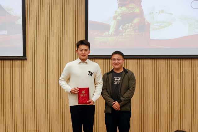 最后,2021级国际经济与贸易专业学生袁瑞铃以扎实的语言、文字功底,饱满的精神面貌和极具感染力的演讲在本次比赛中脱颖而出,一举夺魁。以“燃烧青春风华,复兴强国梦想”为题,描绘了电影《万里归途》中国外交官受命前往战乱国家协助撤侨的故事,展现出中国气量,歌颂了盛世中华。