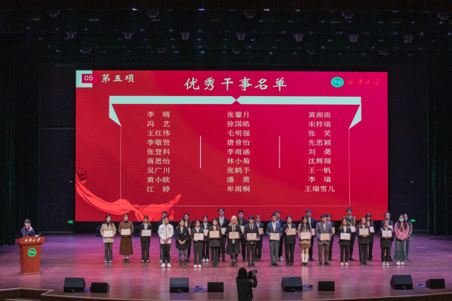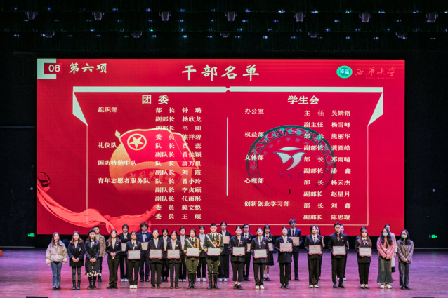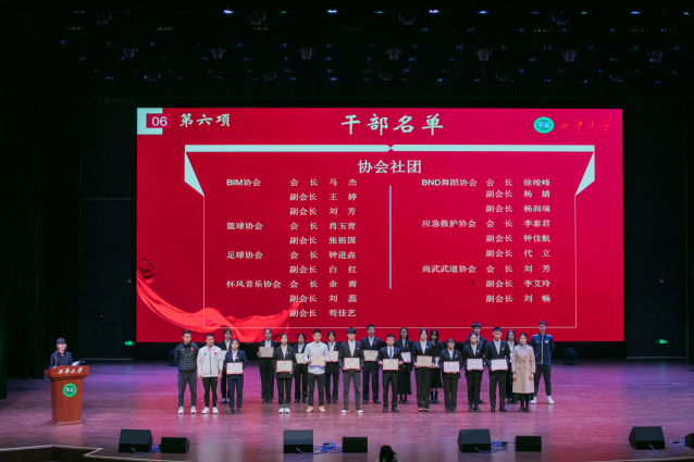 紧接着,莅临现场的各位领导和老师宣读各学生组织及协会优秀干事名单并颁发荣誉证书,宣读学生干部,第四届团委副书记、学生会主席团、新媒体中心主任、广播台主任名单并颁发聘书、合影留念。大会在此气氛达到了高潮。过去一年的工作画上了圆满句号,新成员跟随第三届学生会主席团成员刘智力同学宣读骨干誓词后,聆听毕达平书记的寄语,清晰地了解到学生组织工作在bv伟德国际体育官方网站学生工作中的重要位置,认识到自己身上肩负的责任。同学们将以毕书记的讲话为指导,将所学落实到日常工作中,砥砺前行,踔厉奋发。