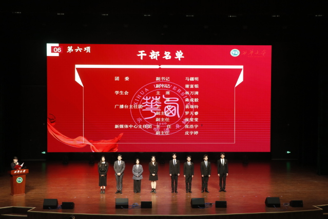 伴着中国共产主义青年团团歌歌声,换届大会正式拉开帷幕。会上,第四届学生代表侯夏梦同学从自身出发叙说了在学生组织工作中的经历和对新一年工作的规划与承诺。接着,学生会主席团朱成毅同学发言,有对过去一年工作的总结更有对新一年的展望与期盼他结合自身经历,激励了全体新老成员与他一起不忘初心,砥砺前行。通过李芩旭老师的发言,同学们更进一步了解到学生组织工作,并明白在今后的工作中不断完善自我。在挑战与机遇共存的环境下,上一届学生干部与干事们依然坚守岗位,圆满完成工作。在往后的日子里,新成员将承接上一届的工作,青春不懈,奋斗不止