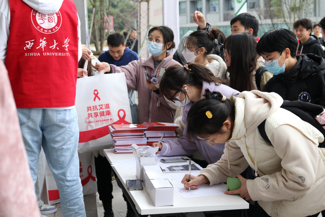 本次活动一经开始便得到同学们的积极参与,同学们通过扫码答题和阅读宣传手册的方式学习艾滋病及性病的基本知识、传播途径、预防措施社会危害以及人文关怀等内容现场志愿者在分发宣传手册时呼吁同学们正视艾滋病,树立“相互关爱.共享生命”,通过指定答题数目的同学可获得宜宾三江新区社会事业局提供的礼包一份,进一步提升了同学们学习防艾知识的积极性