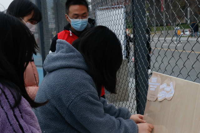 同学们在张贴作品