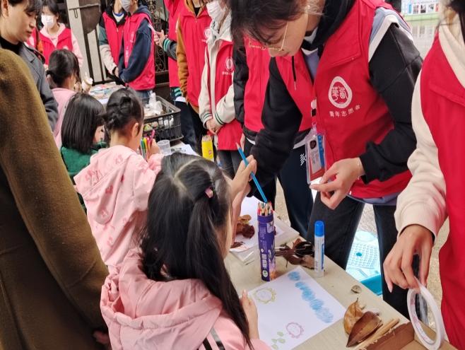 本次活动共分“图文对应”、“落叶拼贴”、“手绘盆栽”三个板块。活动现场热闹非凡,来往居民纷纷参与其中。居民们通过认识所展示的植物图片和植物名称并却正确答对即可获得小礼品一份。接着,志愿者还将提前准备好的树叶和盆栽分发给社区居民,并提供胶棒、彩色卡纸及彩笔等工具,以便大家自由拼贴落叶和手绘花盆。该活动不仅发挥了居民们的想象力和创造力,还增强了对植物的识别和认识的能力,并且在活动的过程中积极的给大家科普保护环境的意识。