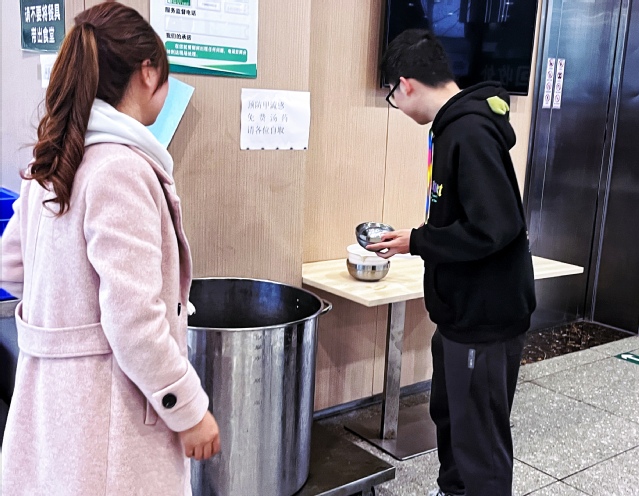 流感是由流感病毒感染引起的呼吸道传染病,主要是通过飞沫和密切接触传播,症状表现为高热、头痛、乏力、咳嗽、全身酸痛。而春季是流感高发季节,尽早了解疾病特征、传播途径和防治要点,是维持健康的重要途径。因此bv伟德国际体育官方网站积极采取措施,面向全校师生发放大锅中药。在晚餐时段,同学们带好各自的器皿秩序井然、有序不紊地排队等待领取药剂。食堂阿姨积极向大家宣传中草药汤药对预防流感的好处,并暖心叮嘱同学们按时饮用,做好自我防护。此外,校区还科普了流行性感冒的相关知识和预防举措,建议大家减少人群聚集,保持室内空气流通,加强锻炼、增强体质,或接种疫苗,使用药物预防。同学们表示,这使大家的身体健康有所保障,深刻感受到了校区的对同学们的用心,体现了深切的人文关怀。