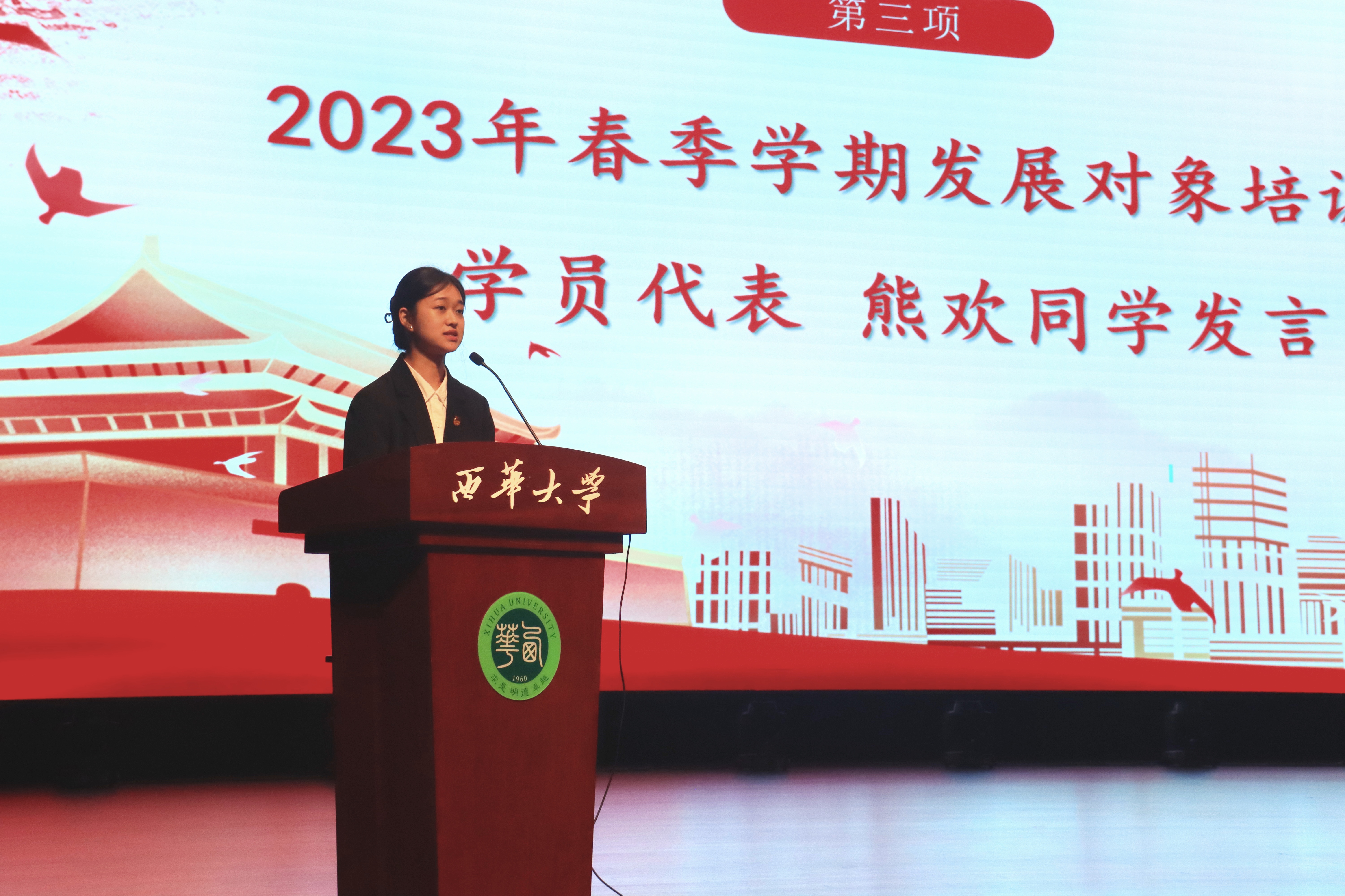 开班仪式共七项议程。第一项议程,全体成员奏唱国歌,紧接着入党积极分子学员代表马㵸洋发言,他鼓励大家认真对待此次培训,遵守纪律,端正学习态度,不断提高自身的党性修养和思想觉悟。发展对象学员代表熊欢发言并表态,在接下来的党校学习中,坚定信念、心怀国之大者,不断进取,做到学有所思、学有所得、学有所用,在学习工作中做到吃苦在前享受在后,勇做奋斗有为的强国青年,并对党组织的培养教育表示衷心感谢。