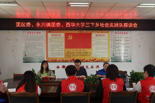 在7月4日,“荷莲”文化助力乡村振兴与文化传承实践团以及李芩旭指导老师在永兴镇与团区委副书记毛应评、永兴镇团委书记徐晓与实践团队在永兴镇人民政府开展座谈交流会,团队队长汇报本次社会实践活动进程以及后续实践调研相关工作安排,并共同探讨方案的可行性,“荷莲”文化助力乡村振兴与文化传承实践团队前期的实践成果以及认真的态度得到一致表扬。